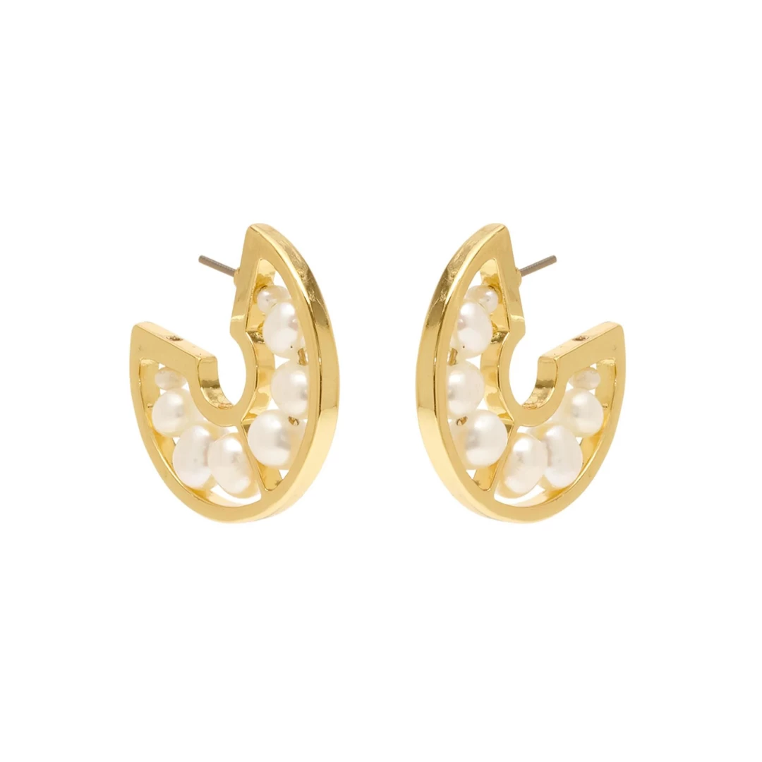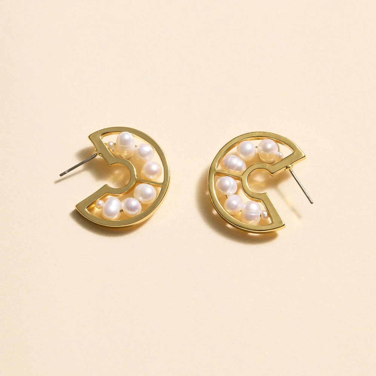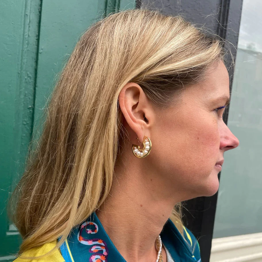 Freshwater pearls with a bit of brevity in this sleek, gleaming mini hoop. An effortless way to combine modern silhouettes with alluring materials.