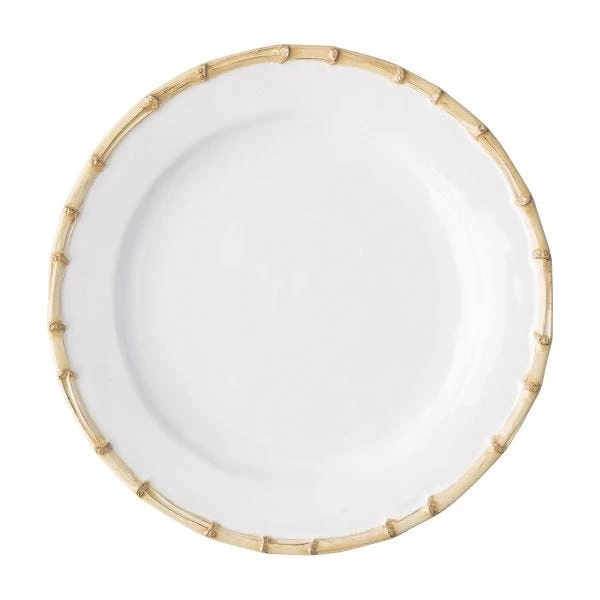A clean modern shape is encircled with the timeless aesthetic of bamboo for a look that translates across continents. Use this chic plate as a serving platter for appetizers or as a cake plate.
