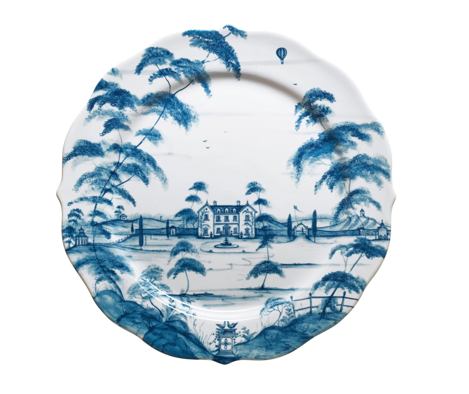 From our Country Estate Collection- An expanded view of the Main House reveals a rolling countryside studded with the estate’s bucolic features on the horizon. Jump on a horse from our stable and gallop over hill and dale for a grand adventure. Whether you are descending from the heavens in a hot air balloon or racing through traffic after a busy day, our handsome charger beckons you to home, hearth, and the abundant fare that the countryside provides. Featuring: Main House, Rose Arbor, Apple Orchard, Stable, and Balloon.
