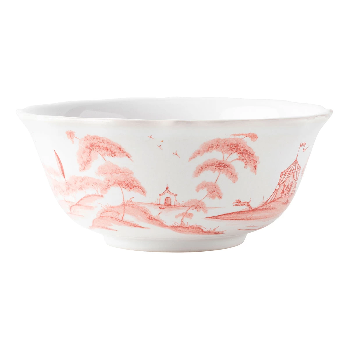 From our Country Estate Collection in irresistibly pretty pink- Our bowls serve as perfect vessels for the morning cereal or your proverbial cherries. Life is lovely when you have a bowlful. Featuring: Hen House, Tea Party Tent, Apple Orchard, and Rose Arbor.