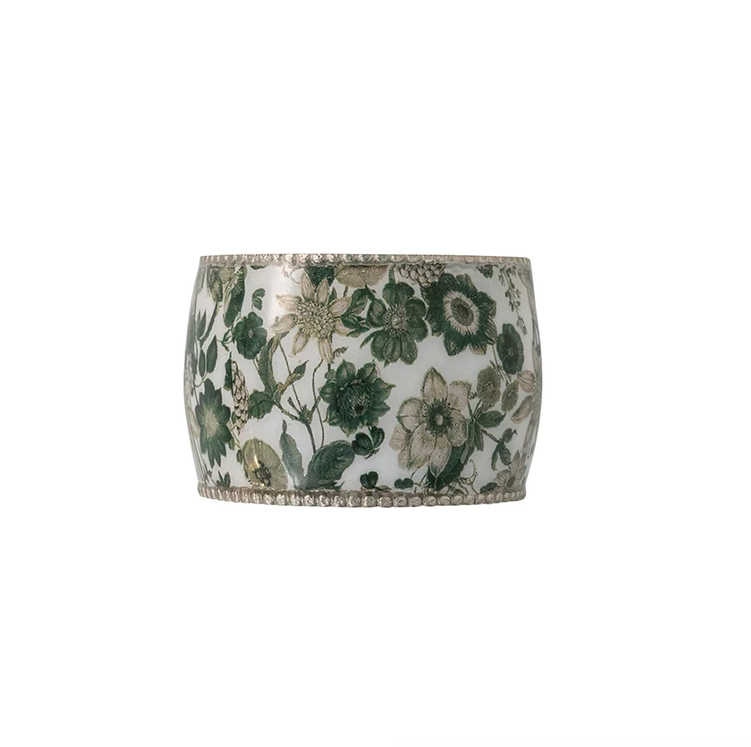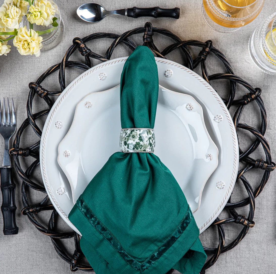 An accent of jewelry for the table, our enamel napkin rings are trimmed with a prim little aluminum braid and pull together table settings with a becoming floral finish that we think is just blooming brilliant!Â