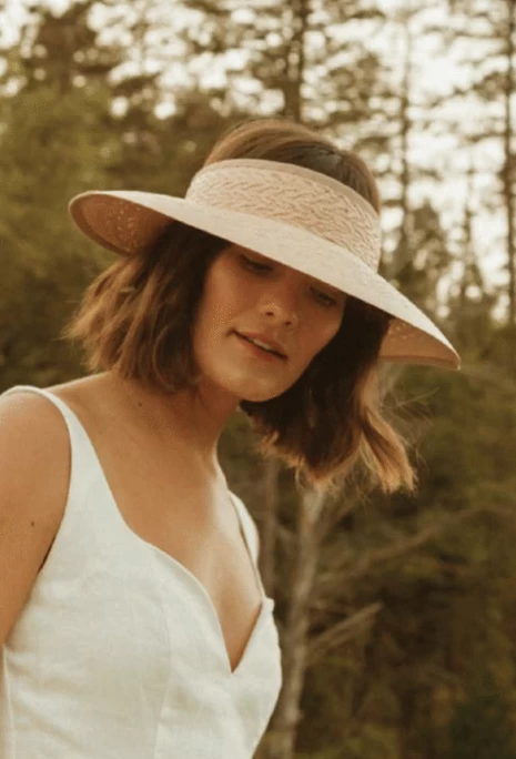 - Broad-brimmed visor with an innovative braid-like woven pattern