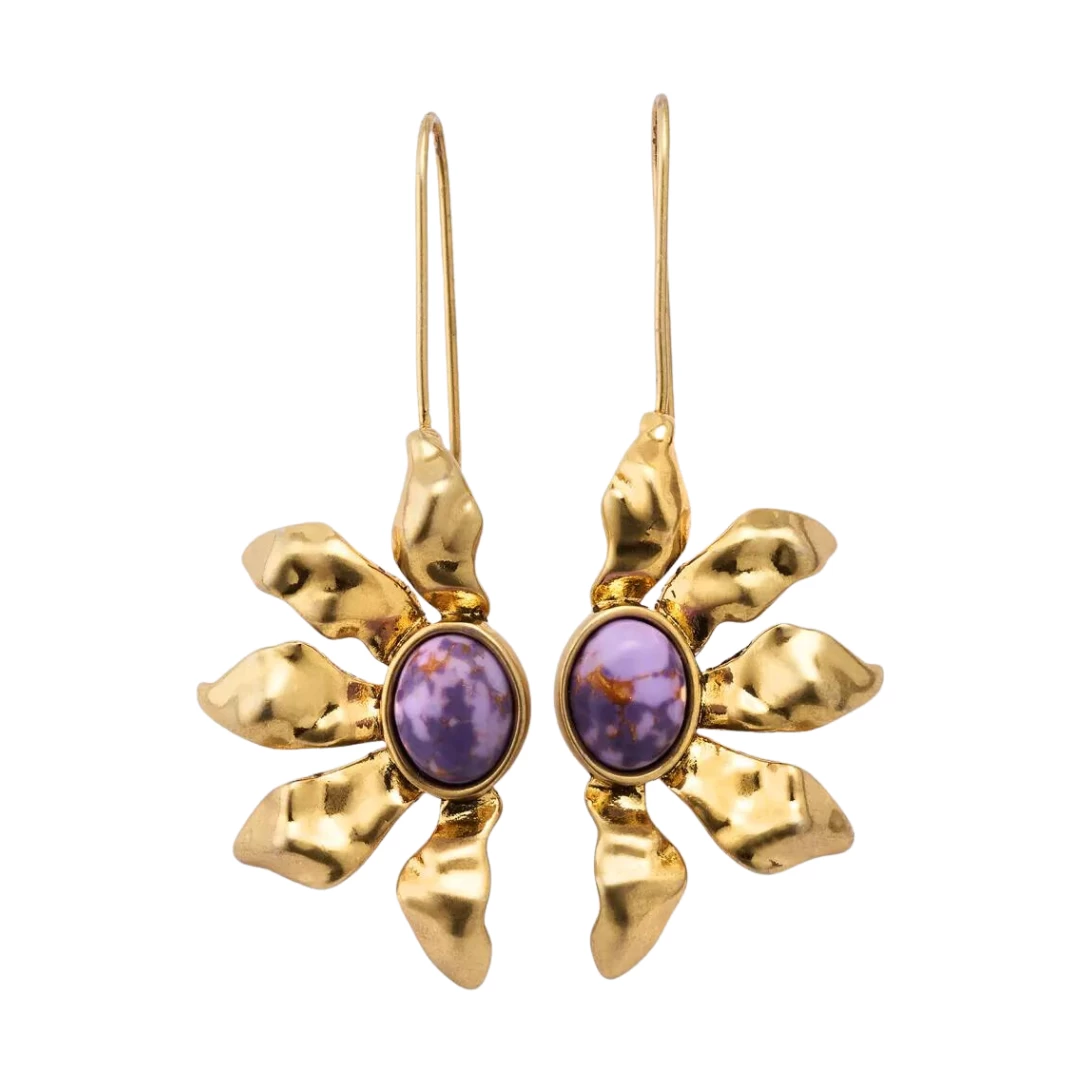 Mignonne Gavigan’s Lou Drop Earrings feature a floral motif.Â
