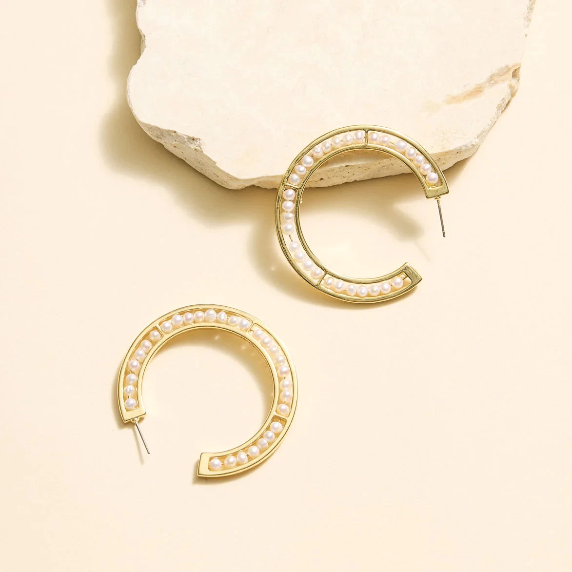 The fall hoop to add to your growing collection, our Betty hoops are adorned with lightweight, freshwater pearls and a gleaming golden impact. Style alongside our Herringbone and Betty necklaces.
