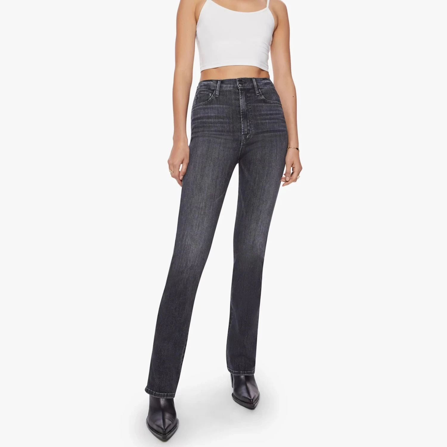 Mother Denim does it again. Holy smokes. The highest-rise flare with a narrow leg and 34-inch inseam for a retro vibe. Crafted from denim with a touch of stretch, Smoking Section is a washed black hue with whiskering and fading at the knee.