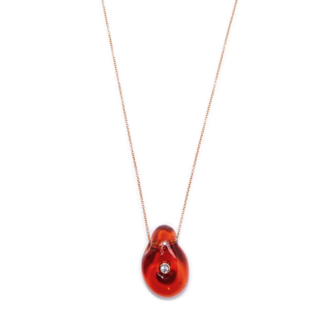 - Gold-plated sterling silver chain, handmade glass, rhodolite