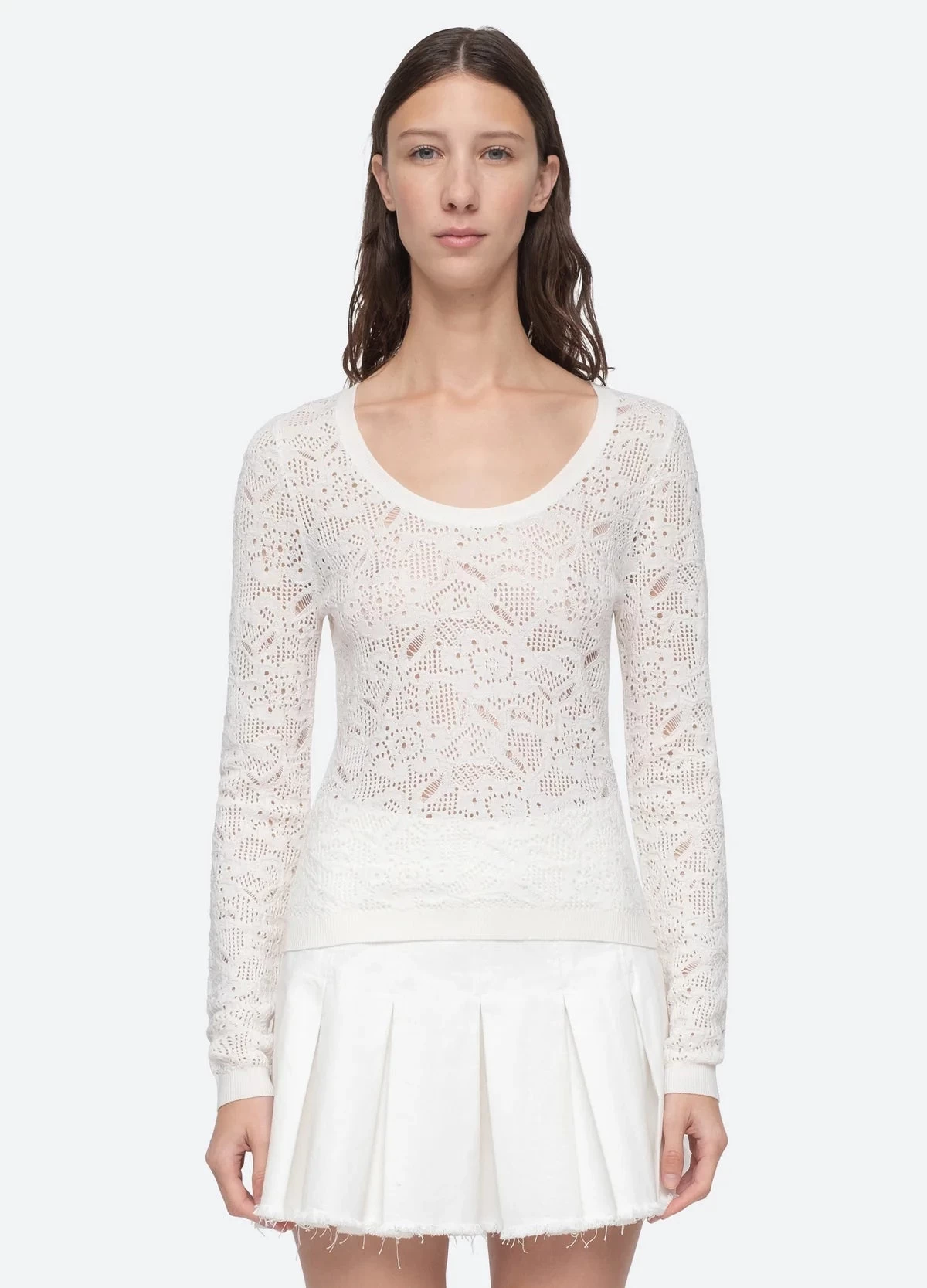 As soon as we came across Sea NY, we knew it was a brand we needed on The Avenue. The Nelle lace sweater features a scoop-neckline and long sleeves. The perfect layering piece.