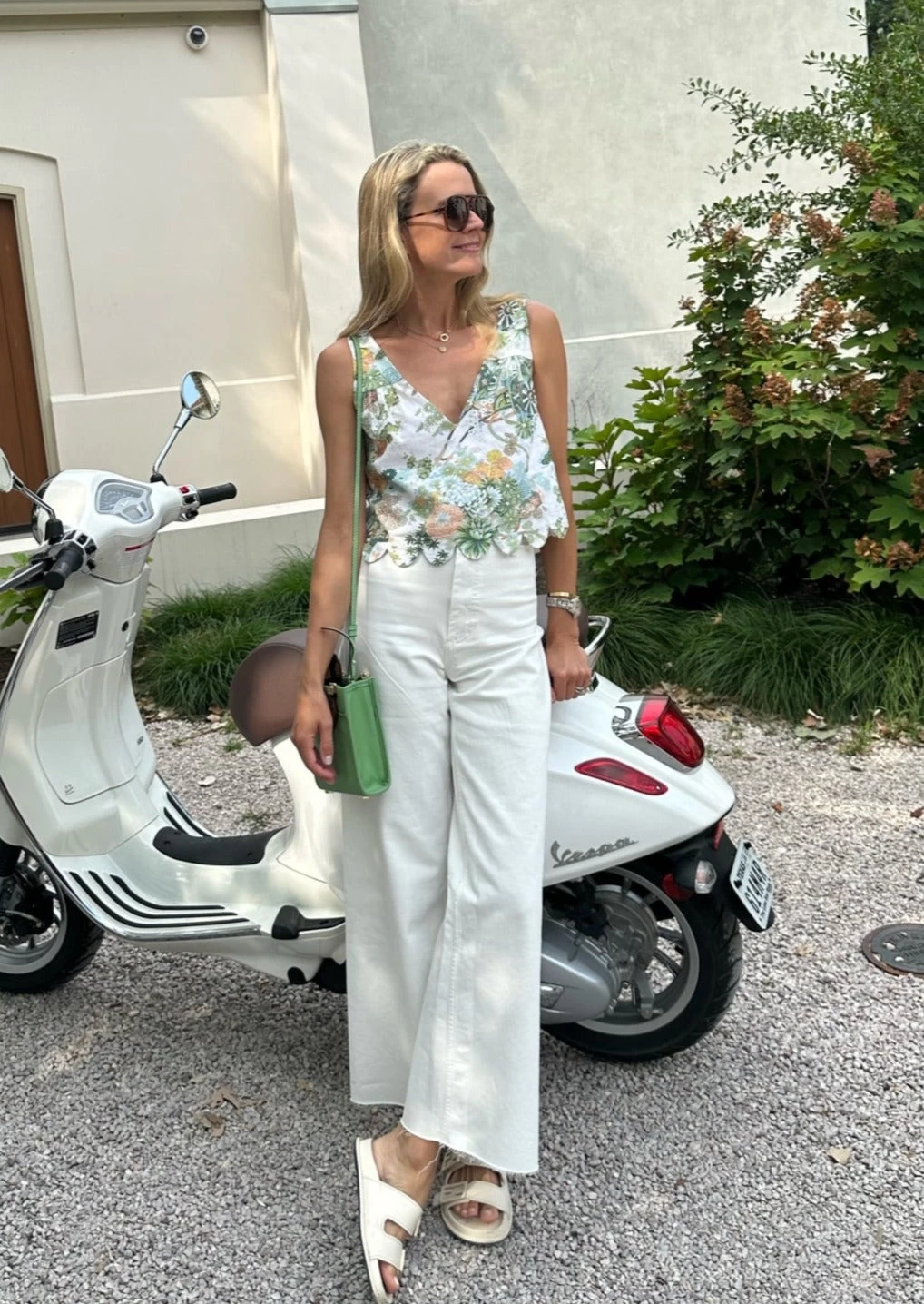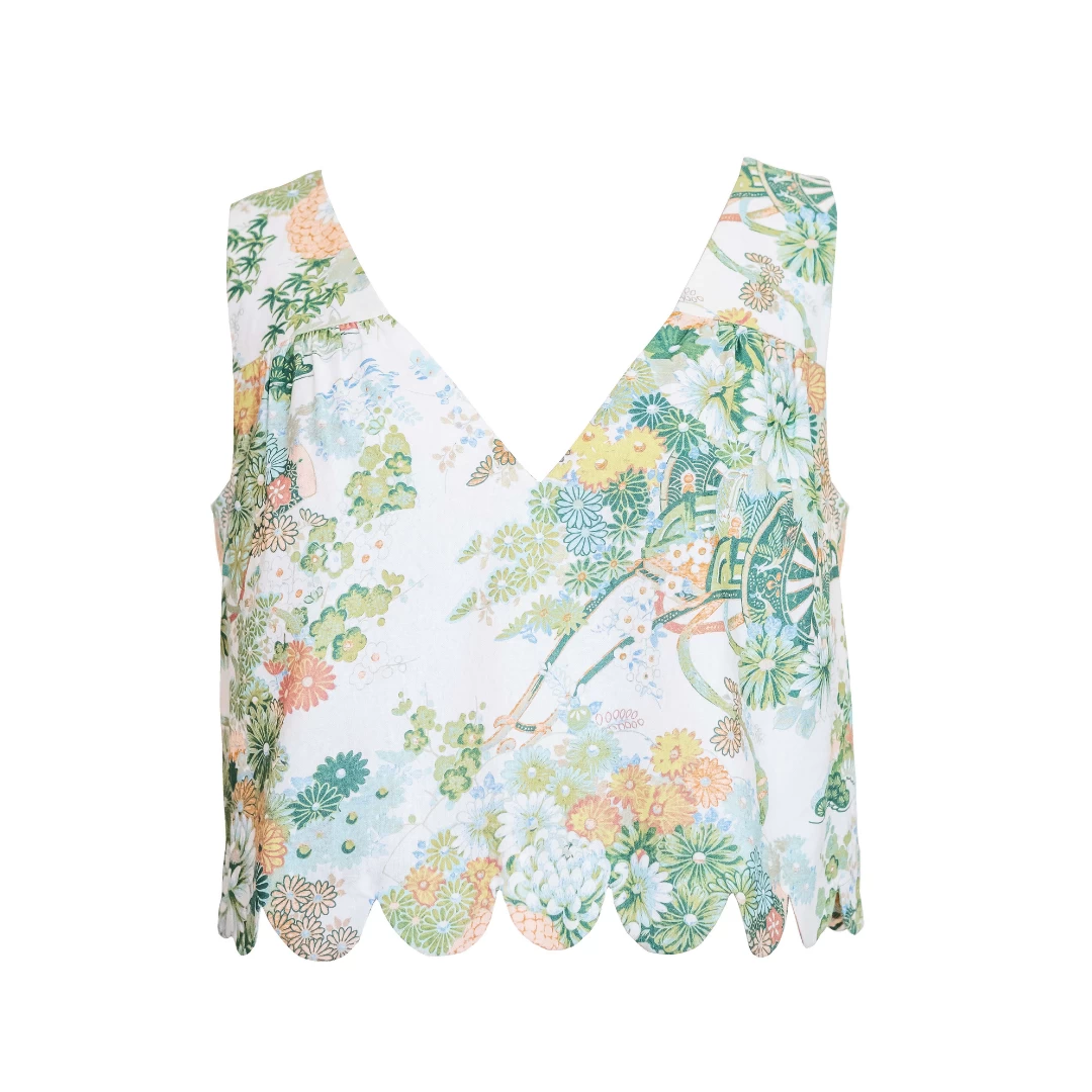 The V-Neck Scallop Detail Tank features a v-neck silhouette and a scallop edge hem detail.Â